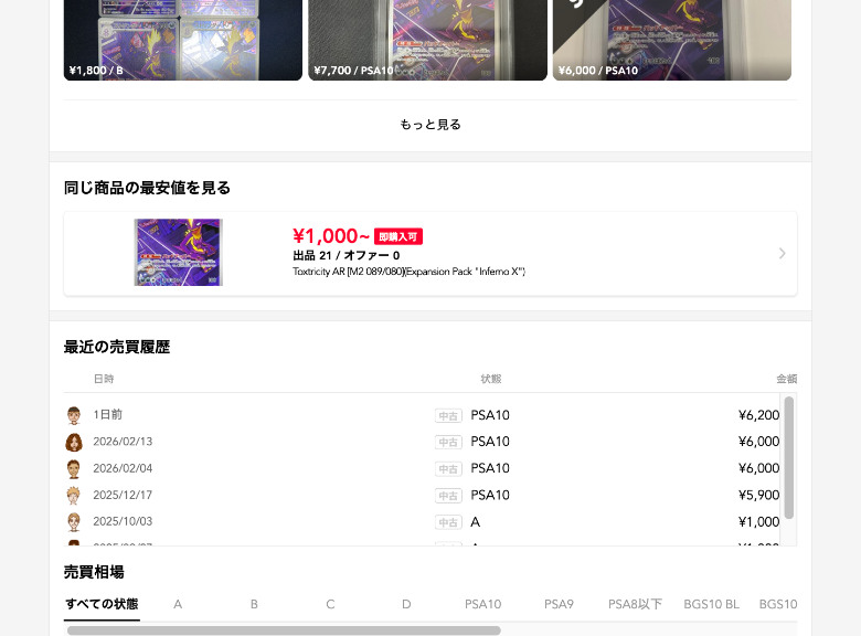 直近で6,200円で売れています。