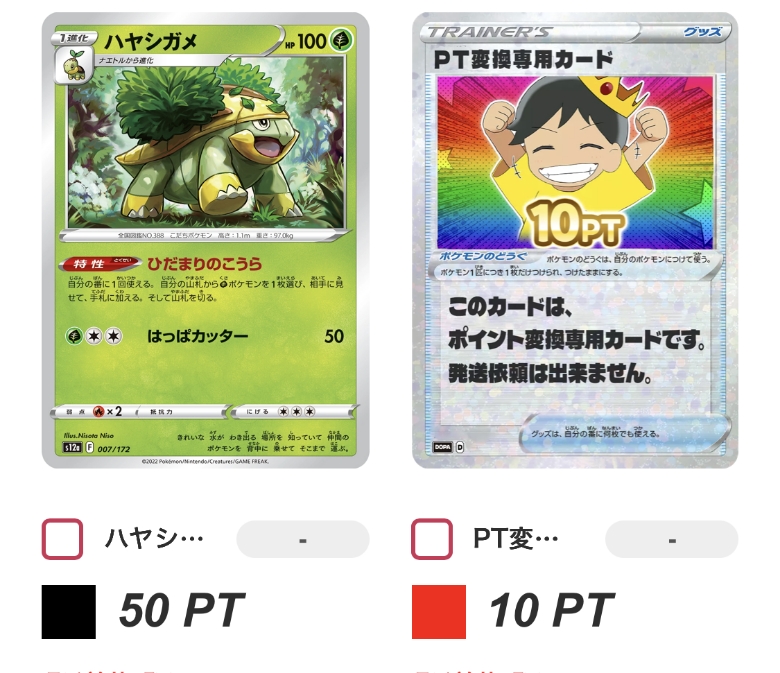 中には『ムンクピカチュウ』、『帽子リーリエ』などの超高額カードとも交換が可能になっています。