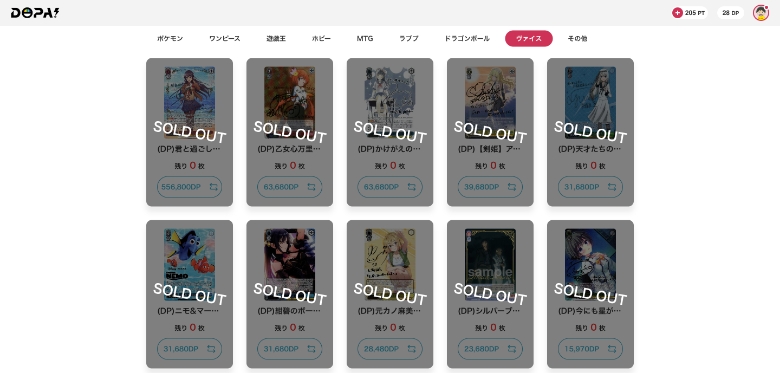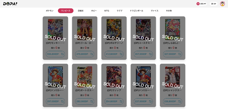 DOPA!のオリパを引いていると気がついたらDPが貯まっていることはないでしょうか?