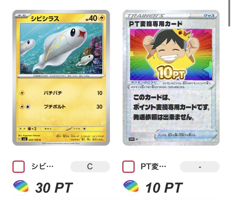 オリパを引くことでオリパに応じてポイントが付与されます。