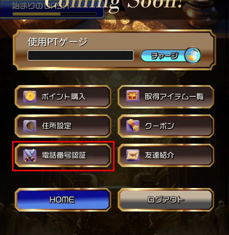 右上の3本線をクリックして電話番号認証をクリック