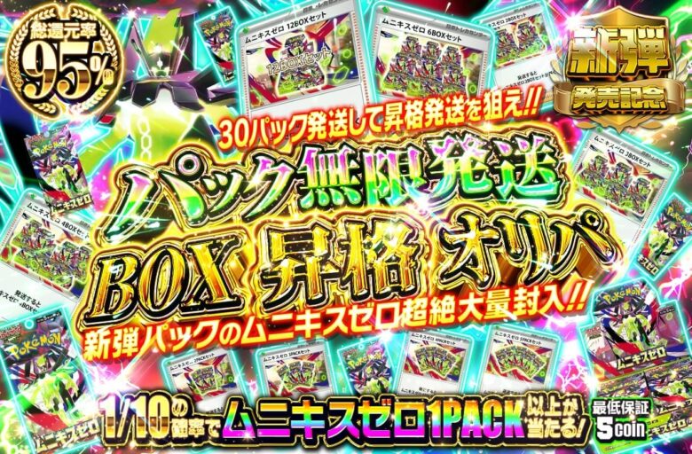 今回はムニキスゼロのBOXが当たるオンラインオリパを紹介しています。
