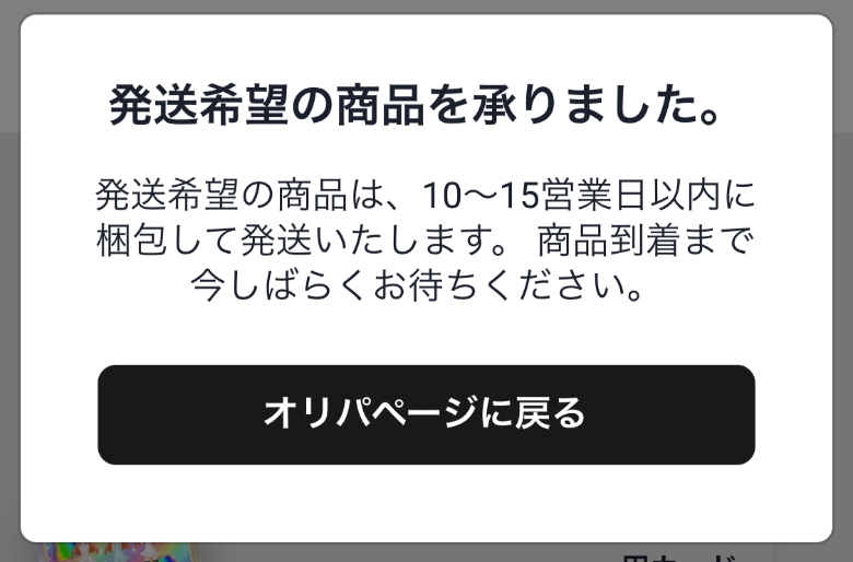 ※実際に発送したら、『10~15営業日以内』になっていました。
